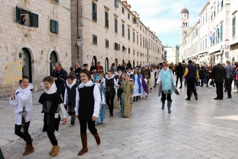 Učenici nižih razreda dubrovačkih osnovnih škola danas su prođirali Stradunom i predstavili svoje maske i kostime.