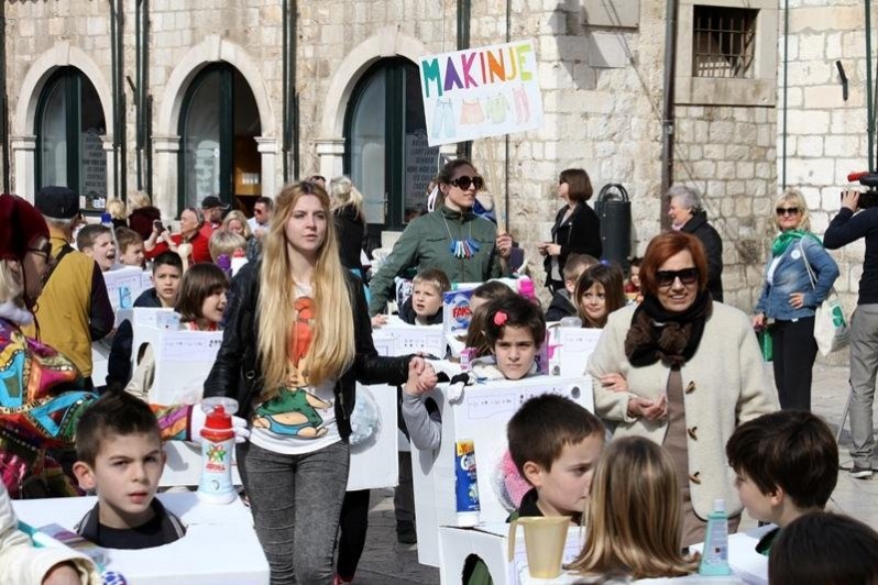 Bilo je tu perilica za pranje rublja, kokica, navijačica, gusara, dalmatinera koji su pokazali koliko su kreativni. Prvo mjesto osvojile su perilice odnosno učenici Osnovne škole Marina Držića. Na samom kraju su svi zaplesali na pjesmu Happy i napravili 'vlakić', a kako je bilo, pogledajte u fotogaleriji.