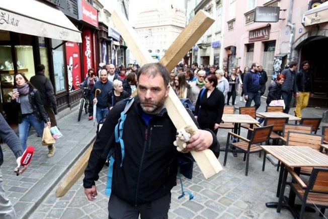 Ovaj čovjek s križem Saša Pavlić bogami nije normalan. Šest dana ići pješke od Rijeke do Zagreba i tegliti križ da bi došao do zgrade Vlade i prenio im poruku da nije normalno da se nitko ne brine za bolesnu djecu i da za njih nema financija dok se u isto vrijeme kupuju borbeni avioni stariji od Mezopotamije.