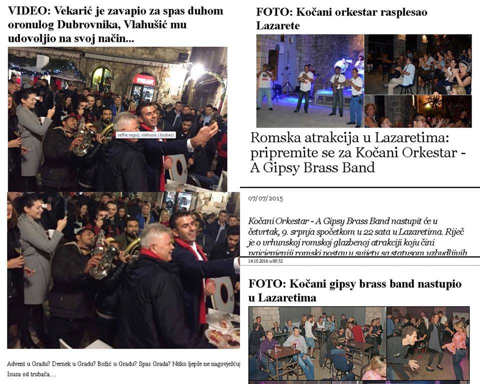 Kako bih vam što vjernije potcrtao hinjenu malograđansku dvoličnost tog medija, na slici s lijeve strane stavio sam njihovu objavu o impromptu koncertu u petak, 19.11. i tri od više objava kojima su najavljivali nastupe Kočanog orestra u Lazaretima i/ili izvještvali o oduševljenosti dubrovačke publike muziciranjem istih.
