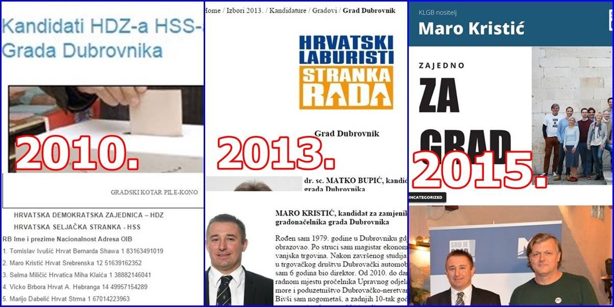 Zato je na kraju Maro Kristić izašao iz druge stranke i na sljedeće izbore izlazi kao kandidat opet nove, treće opcije, liste Srđ je Grad, i dalje dobro zbrinut u Županiji, na račun pretprošle opcije i trgovine HSS-a. A to je tek pravi maskenbal. Jedino što je Maro Kristić napravio protiv golfa na Srđu bilo je divljanje s govornice Gradskog vijeća kada je izgovorio rečenicu kako će vijećnicima 'suditi ulica,' kako mu je to napisao njegov PR savjetnik da kaže. Naime, Dubrovački dnevnik je već dokazao kako se priopćenja Laburistima i službeno pišu u Županiji, na istom računalu kao i ona HDZ-a i Županije. U radno vrijeme i na račun novca poreznih obveznika.