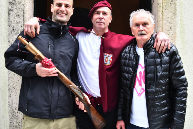 07) Maro, Frano i Božo - festanjuli i trombunjeri i predah trebaju, kod kapelice svete Ane ih pred povratak u Grad na spuštanje barjaka i