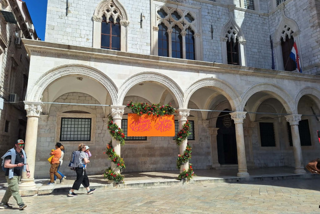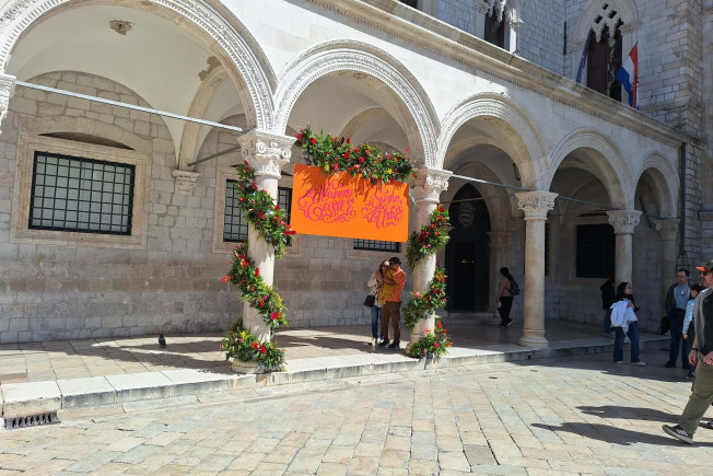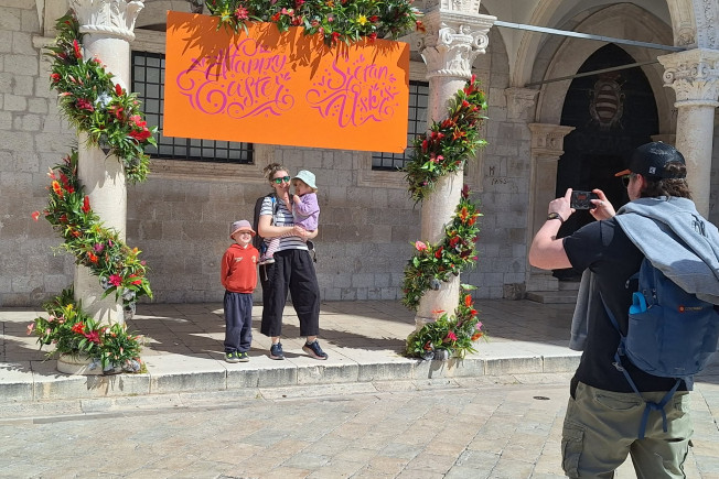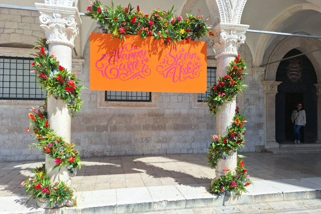 Bliži se Uskrs pa je opet u svečanom izdanju. Ovaj put, ispred Sponze je uređen novi 'photo point' ili mjesto za slikavanje na kojem se prolaznici već rado fotografiraju.