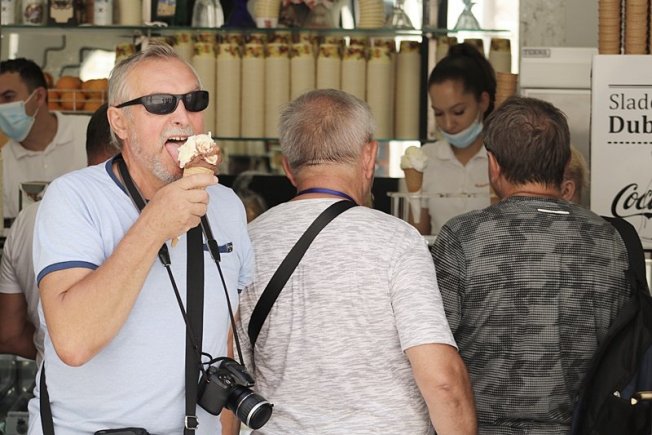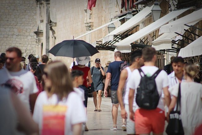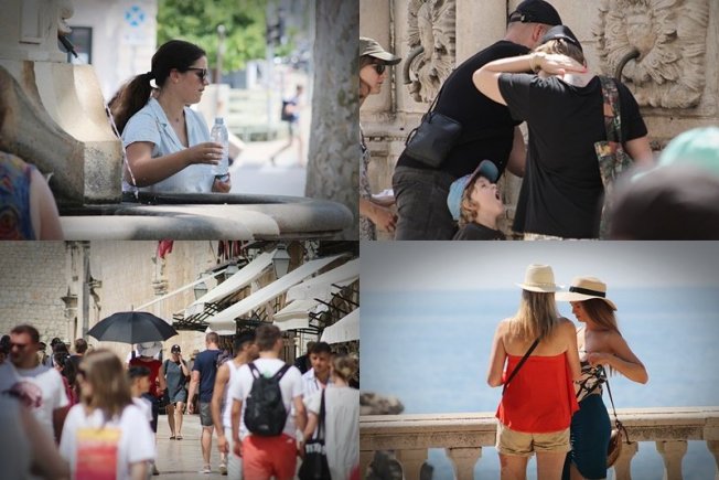 DHMZ danas je i za Dubrovnik izdao crveno, najveće upozorenje od toplinskog vala. Dubrovnik je od jutarnjih sati na 30 Celzijevih stupnjeva, a temperature su tijekom dana dodatno porasle. Šetači na Stradunu opskrbili su se šeširima, neki su ponijeli suncobrane, dok su se drugi ohladili u fontani i osladili sladoledima. Kako je bilo jutros na Stradunu, pogledajte u fotogaleriji.