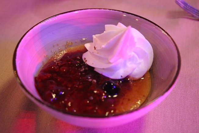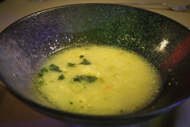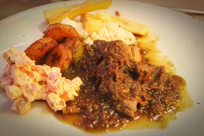 Na meniju su se našle male arepe sa sirom, potom je poslužena juha s Anda napravljena od krumpira, piletine, korijandera, mlijeka i sira. Kao glavno jelo poslužen je nacionalni specijalitet Asado Negro, a radi se o goveđem butu u umaku guasacaca s prilozima i neodoljivo podsjeća na pašticadu. Kao desert je posluženo slatko od jama tj. jam armoatiziran sa sarrapiom ili sjemenom 'tonka' stabla. Lagano, ukusno i jako zanimljivo, tim bi se riječima najjednostavnije mogla opisati poslužena jela.