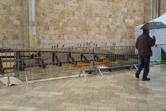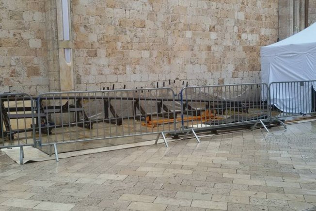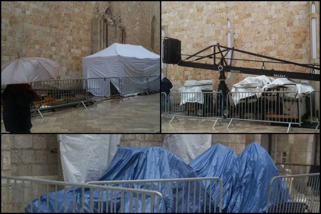I dok je jučer bilo sunčano vrijeme nije bilo problema za završne pripreme prije početka snimanja, a danas je ipak kiša napravila problem te su svi rekviziti pokriveni tendama kako se ne bi uništili. Stigla je i šina, ali nije poznato za što će se točno koristiti. U šatorima filmska ekipa briše stolove i pazi na ostalu opremu.