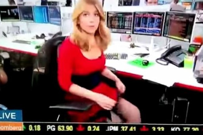 Sarah Eisen, voditeljica televizije Bloomberg nije očekivala uključenje u program, a kada se našla u kadru brzo je spustila suknju do koljena i sakrila nešto.