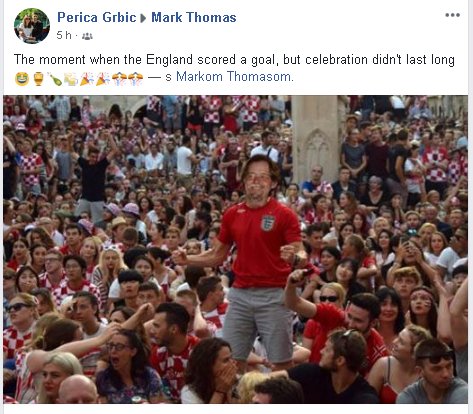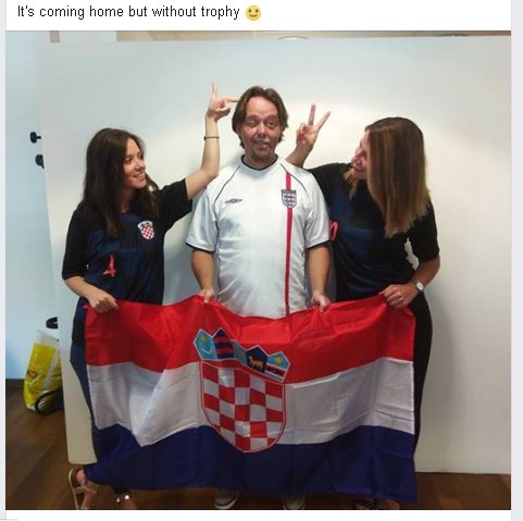 Ipak, nije to bilo u potpunom miru jer je tijekom utakmice, kao Englez koji živi u Hrvatskoj, dobivao brojne poruke od strane prijatelja i poznanika, kako iz Hrvatske, tako i iz Engleske.