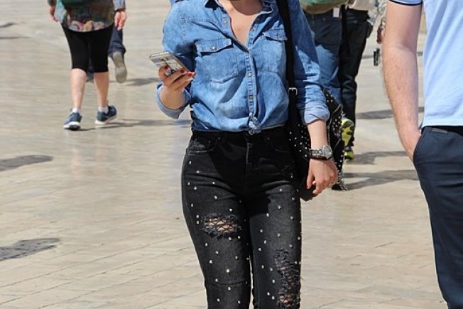 Odabir crne je uvijek idealan, bilo da je riječ o dnevnim ili noćnim kombinacijama. Za dnevno izdanje crno odlično ide s rebatinkama, posebno ako su modernog uskog kroja. Djevojka s fotografije odlučila se za ležerno izdanje, veliku torbu, neobične naočale i najvažniji modni dodatak - širok osmijeh.