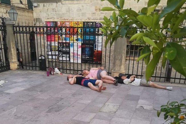 S dolaskom sezone na gradskim ulicama se sve češće mogu vidjeti turisti koji posvuda spavaju i izležavaju se.