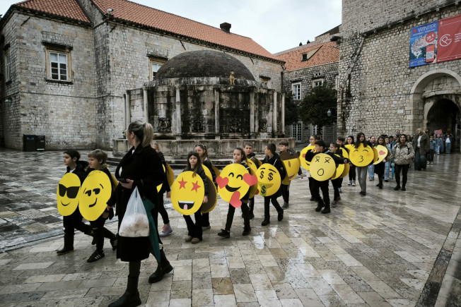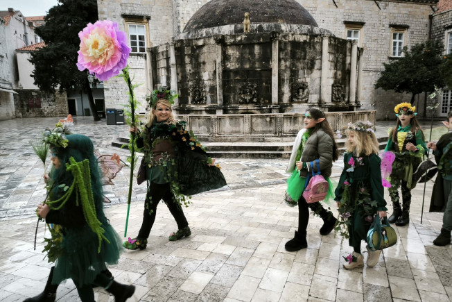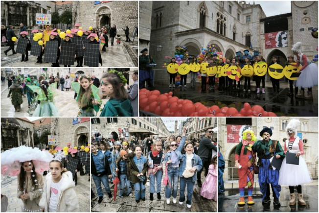 Maškarani učenici učinili đir Stradunom: Vilenjaci, emotikoni, pa i solarni paneli 'zauzeli' Grad i unijeli radost i pjesmu (FOTO/VIDEO)