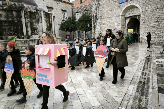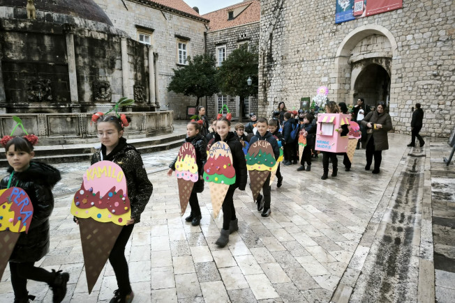 Đir Stradunom učenika od 1. do 4. razreda osnovnih škola održan je jutros, u sklopu ovogodišnjeg Dubrovačkog karnevala.