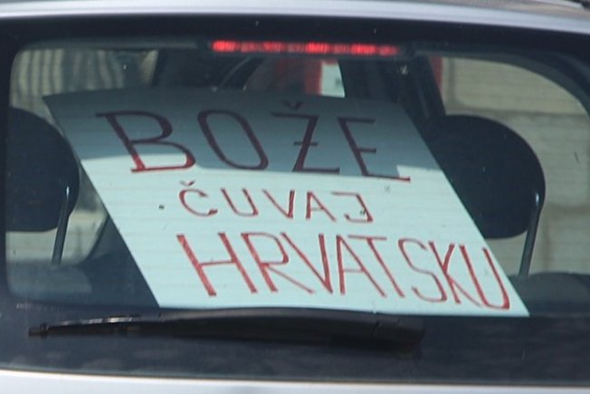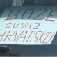 Riječ je o naslovu pjesme 'Bože čuvaj Hrvatsku' Đanija Maršana. Ne zna se je li povod što Hrvatska danas igra svoju prvu utakmicu na Europskom prvenstvu, zato što se raspada Vlada ili je vozač jednostavno obožavatelj Đanija Maršana, ali natpis je svakako privlačio pozornost prolaznika, ali i našeg fotografa.