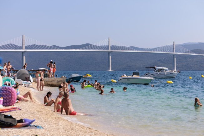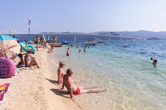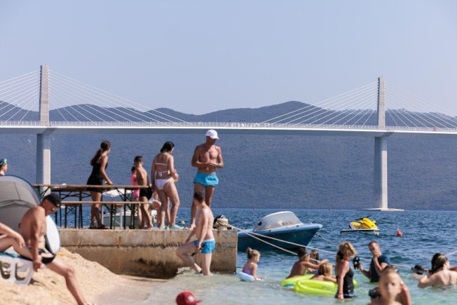 Tako u Komarni kupači uživaju na plaži s pogledom na Pelješki most koji će večeras biti otvoren za promet i otamo prate događanja. Njima je, definitivno, trenutno najbolje.