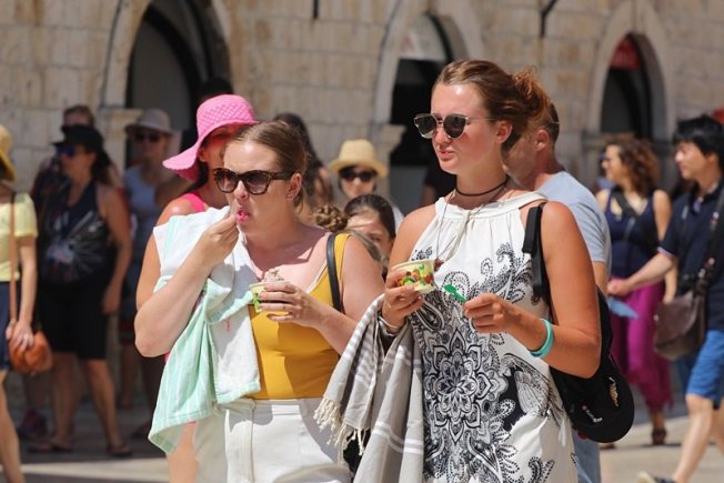 Dok jedni traže osvježenje na plažama, drugi su kod kuće, uz klima uređaje. Ipak, ima i onih kojima vrućina ne smeta pa su jutros napravili koji đir Stradunom i 'hvatali' boju. Tko je jutros bio u Gradu, provjerite u fotogaleriji Gorana Mratinovića.