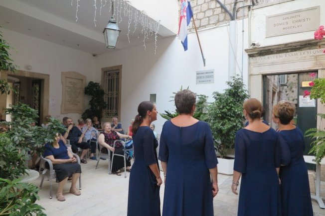 Ženska klapa „Amfora“ zapjevala je večeras u portunu najpoznatijeg dubrovačkog Doma za starije i nemoćne „Domus Christi“ koji na istom mjestu postoji gotovo sedam stotina godina.