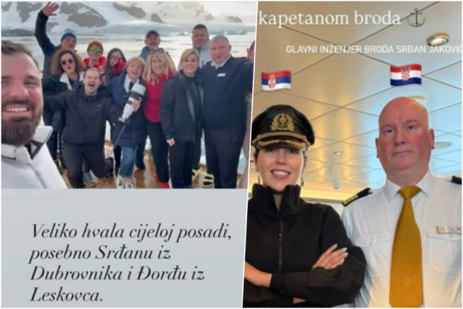 Naime, na fotografiji na kojoj pozira s grupom putnika, a koju je fotografirao travel influencer koji je ujedno i prvi Hrvat koji je posjetio sve zemlje na svijetu, Grabar Kitarović je zahvalila i cijeloj posadi broda, među kojom je i upravitelj stroja Srđan Jaković iz Dubrovnika. Upravo je Jaković dobio posebnu zahvalu.