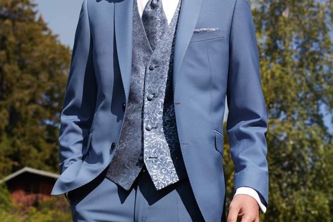 Mladoženje u salon dolaze potražiti odijelo koje će im savršeno pristajati, a izbor je odličan po pitanju krojeva od slim fit modela do većih brojeva šireg kroja. Važno je naglasiti kako postoji mogućnost kombinacije sakoa i hlača po izboru. Trenutno su ponovno IN maramice u džepićima u tonu s kravatom, bilo običnom, bilo leptir.