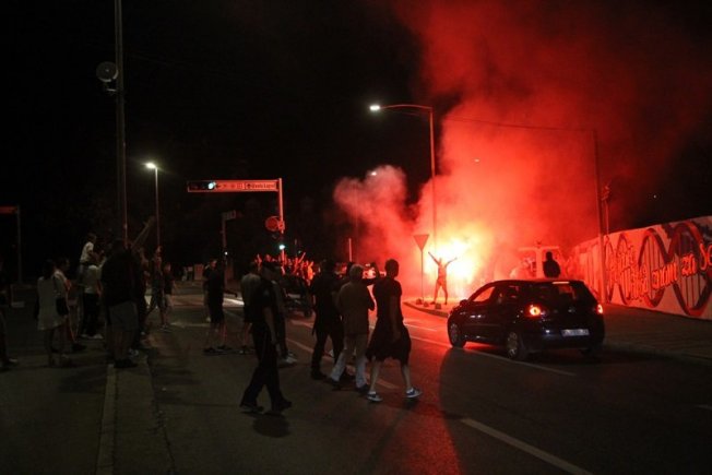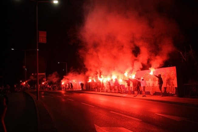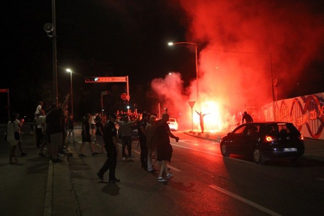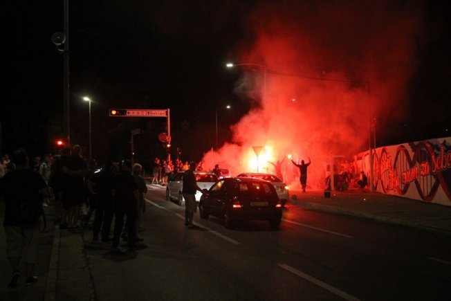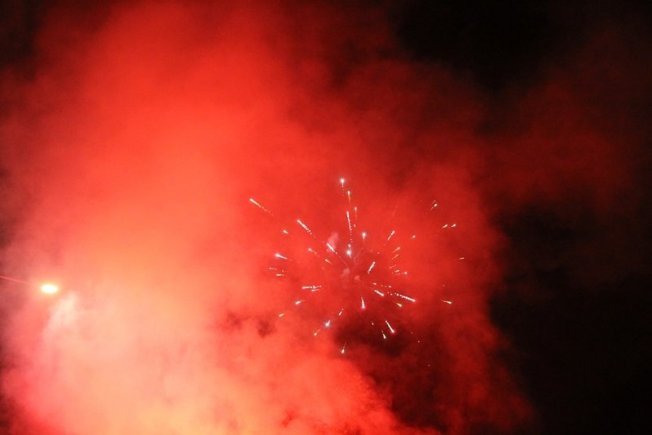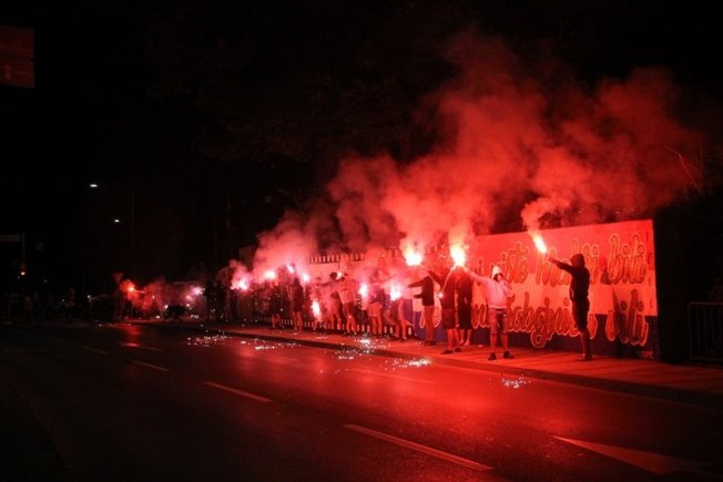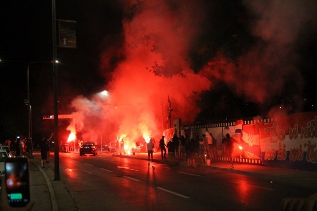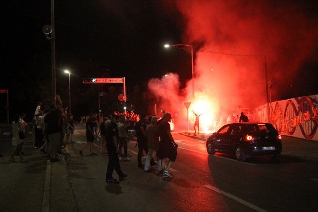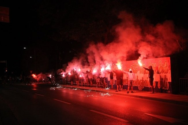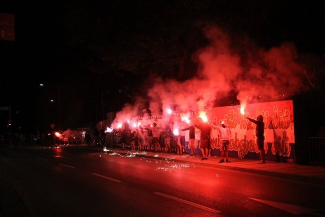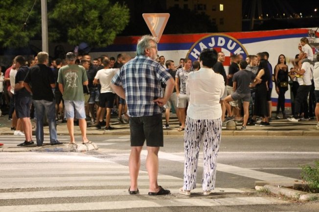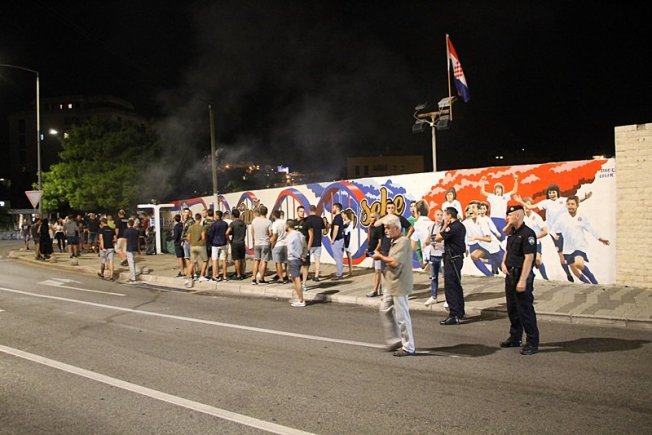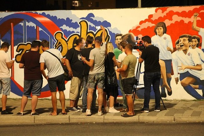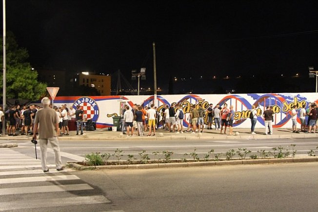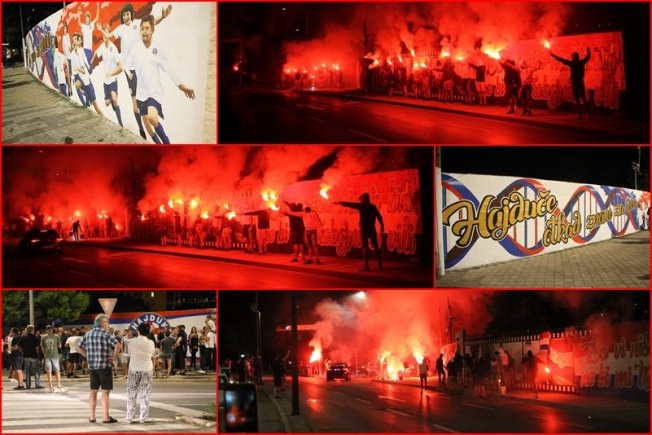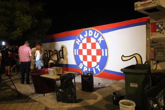 Dovršetak murala i grafita pripadnici Torcide, na čelu s autorom Vlahom Bupićem, su proslavili bakljadom i vatrometom.