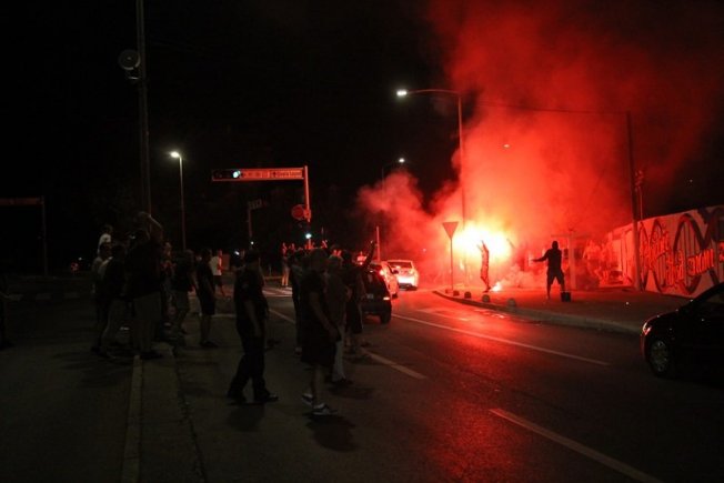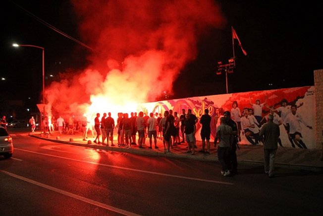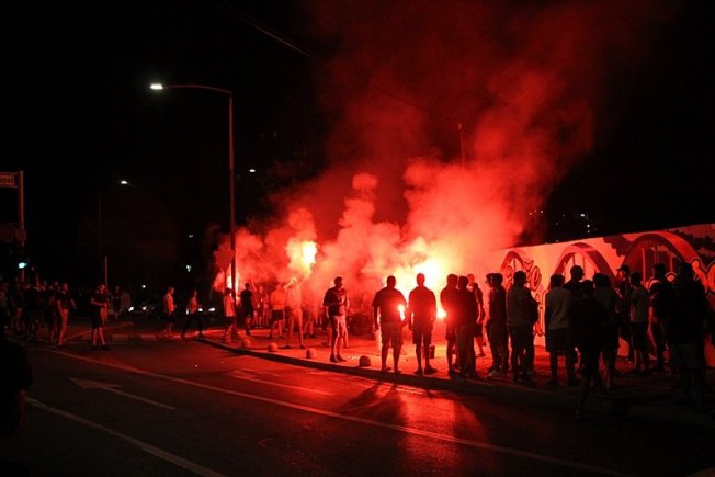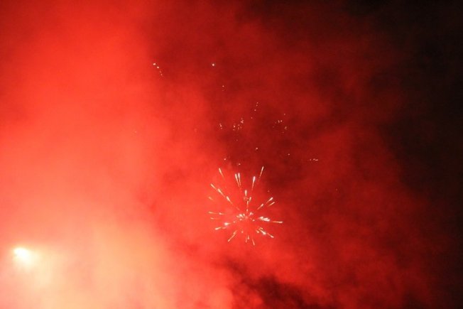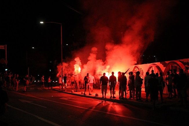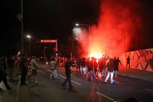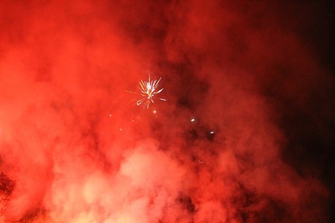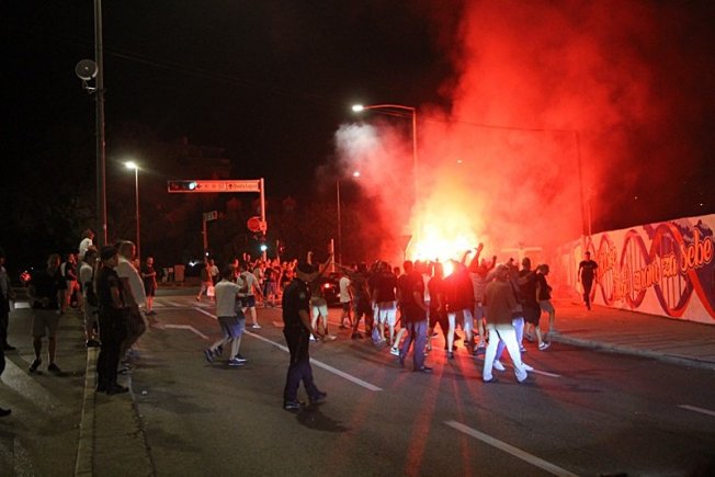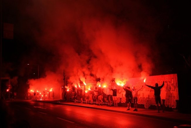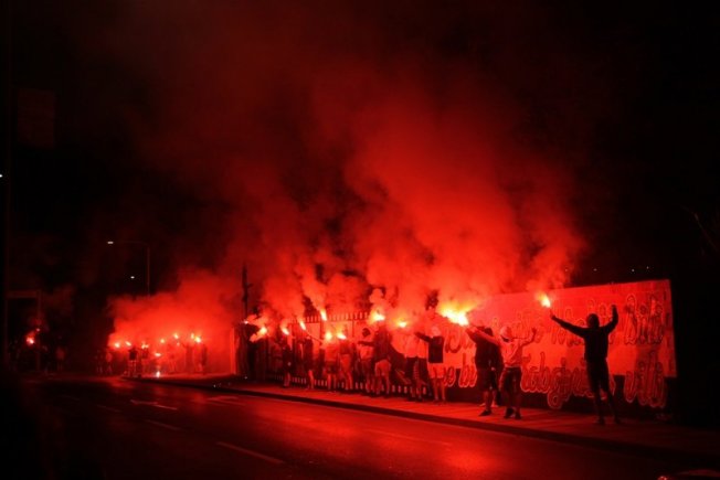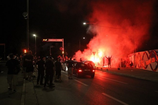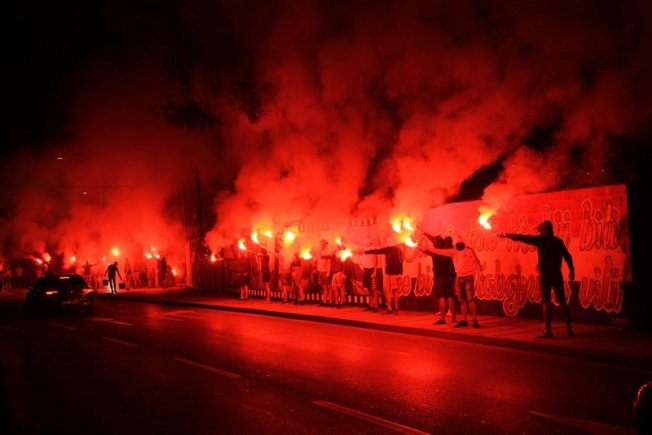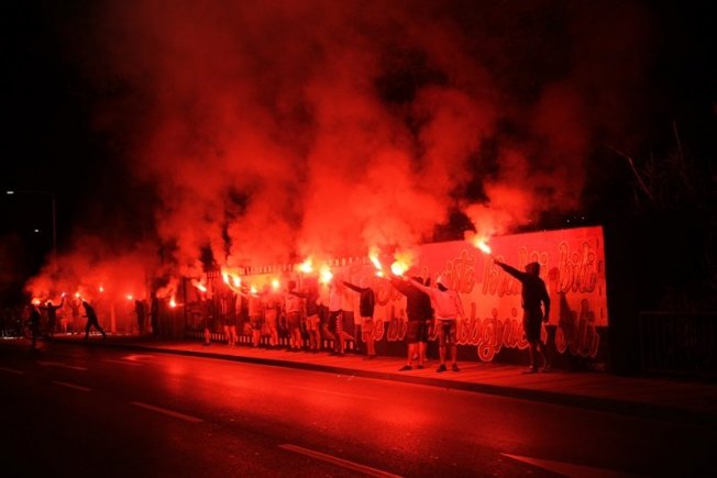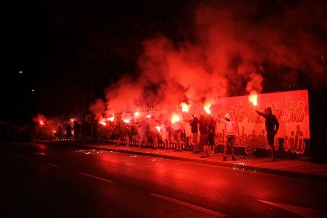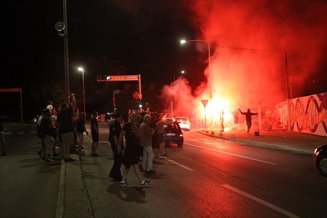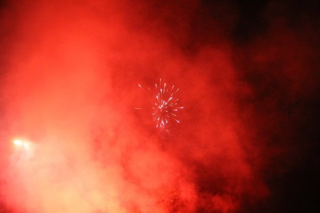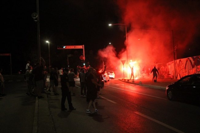Dovršetak murala i grafita pripadnici Torcide, na čelu s autorom Vlahom Bupićem, su proslavili bakljadom i vatrometom.