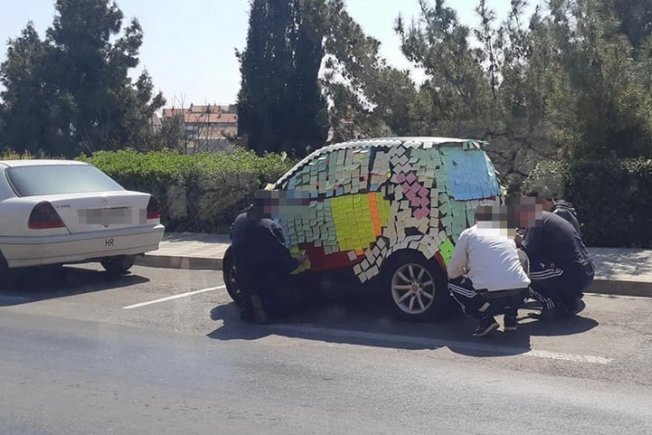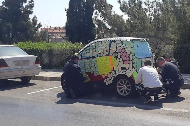 Naime, oblijepili su cijelo vozilo na Vojnoviću. Pretpostavljamo da se vlasnik vozila iznenadio. Kako je to izgledao pogledajte na fotografijama, a evo i trenutka kad je vlasnik ugledao vozilo.