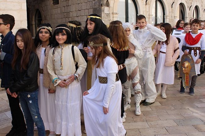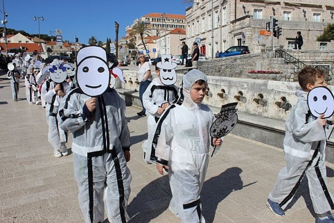 Maškarani učenici osnovnih škola od 1. do 4. razreda prođirali su Stradunom i uživali na maškarati na Karnevalskoj pozornici na Stradunu.