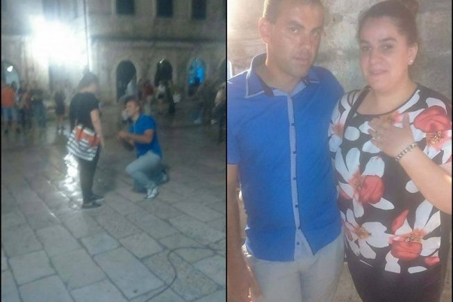 Umjesto već spomenutih luksuznih i skupih lokacija, dosjetljivi je 27-godišnji mladić Mario Konjevod svoju djevojku Renatu Raguž zaprosio na najljepšoj pozornici na svijetu, na Stradunu i time prisutne ostavio bez teksta, a što je najvažnije od svega i svoju buduću suprugu.