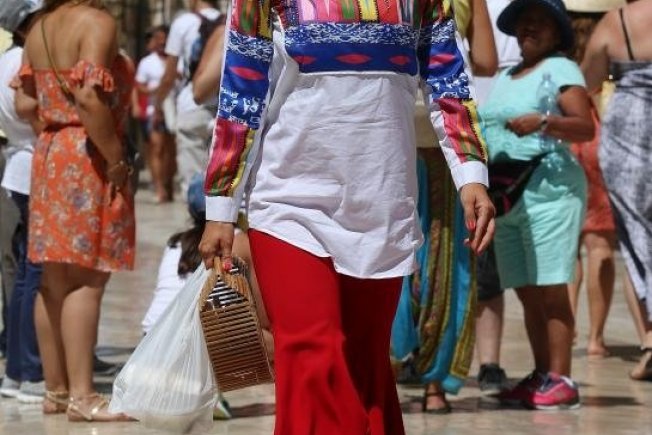 Riječ je o Romani Ivušić, djelatnici gradske uprave, koja je povijesnom jezgrom prošetala u odvažnoj kombinaciji te tako privukla znatiželjne poglede. Romana je na sebi imala crvenu maksisuknju, šarenu bluzu, visoke plave potpetice i zanimljivu pletenu torbicu uz velike sunčane naočale koje su upotpunile njen modni izričaj.