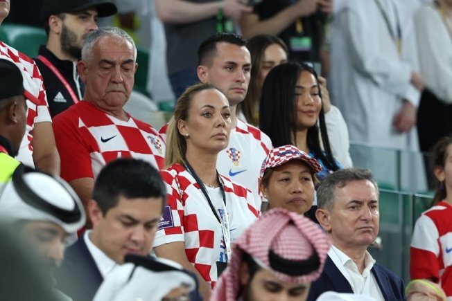 Na tribinama su snimljeni roditelji Luke Modrića, našeg najboljeg igrača, Radojka i Stipe Modrić, ali i Lukina sestra Diora. Vanja Modrić napeto prati svaki potez supruga Luke. U Dohu su stigli podržati Vatrene i bivši reprezentativci Niko Kranjčar i Josip Šimunić. Na tribinama je i vatrena navijačica Ivana Knoll, argentinski Hrvat Željko Buljubašić te Frano Ridjan