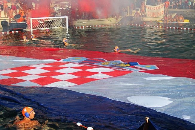 Kao znak hvale svim braniteljima u Domovinskom ratu na površini vaterpolske arene rasprostrta je hrvatska zastava.