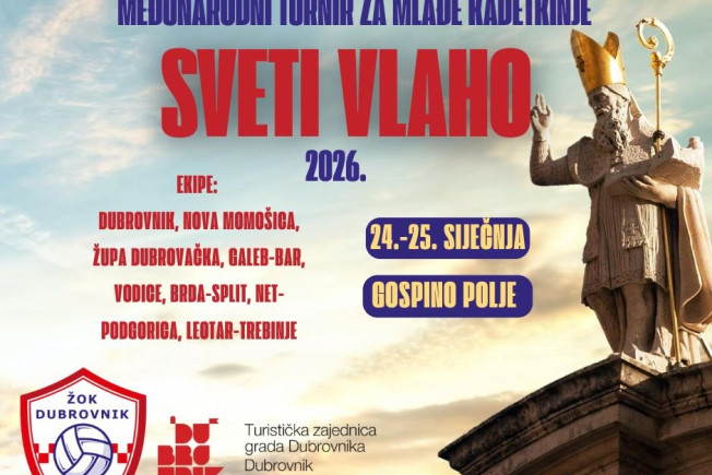 Bliže se dani posvećeni zaštitniku našeg grada, svetom Vlahu. Tim povodom Ženski odbojkaški klub Dubrovnik organizira međunarodni turnir za mlađe kadetkinje „Sveti Vlaho 2026.”, u suradnji s Turističkom zajednicom Grada Dubrovnika.