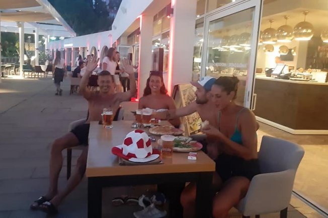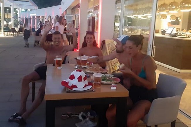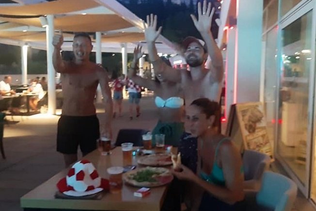 Ekipa od dvije simpatične djevojke i dva dečka iz Francuske bodrila je svoje nogometaše u Sunset Beachu Dubrovnik uz pizzu i pivu. Veseli Francuzi oduševljeno su pozdravili i entuzijastično navijali.