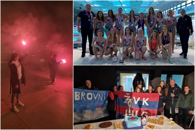 Jugašicama su priredili veseli doček ispred gruškog bazena kako i priliči prvakinjama.