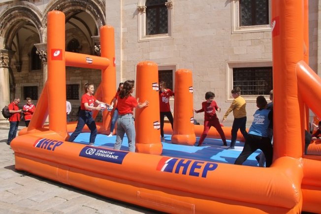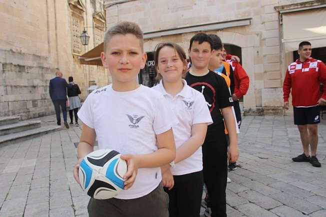 NI NOGOMET, NI KOŠARKA Djeca uz hrvatske reprezentativce ispred Katedrale zaigrala neuobičajen sport (FOTOGALERIJA)
