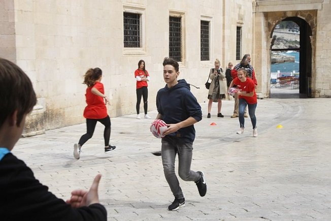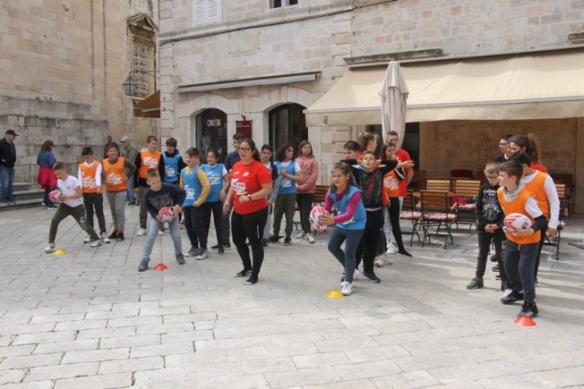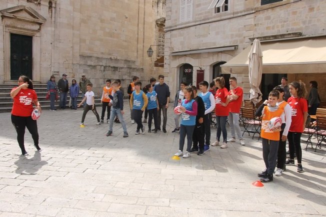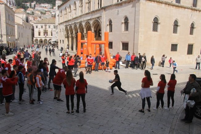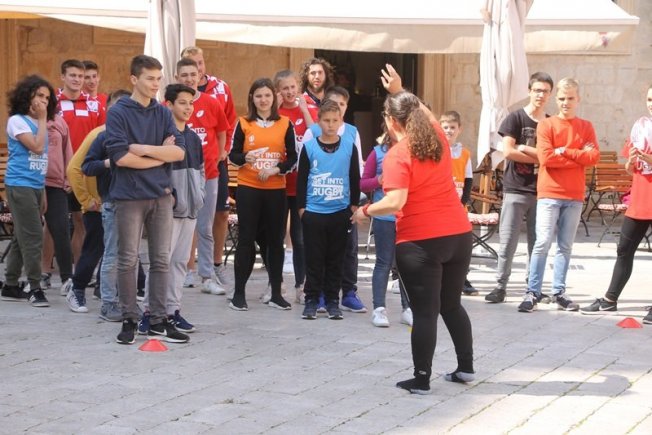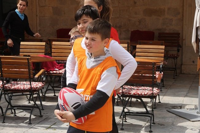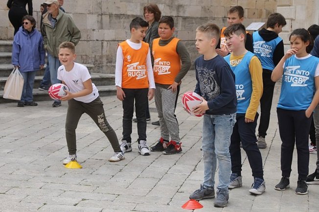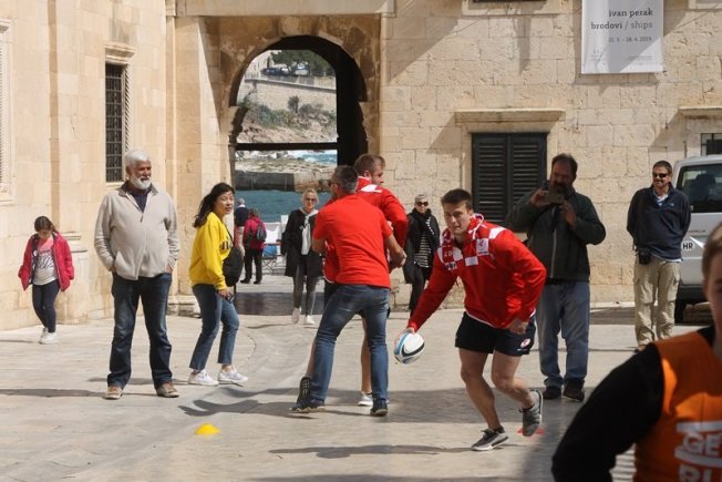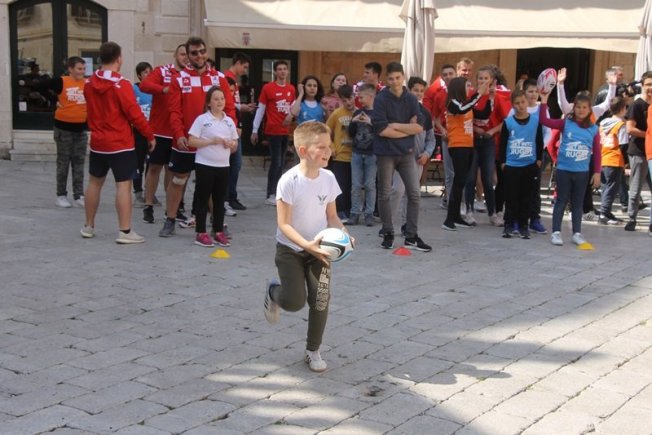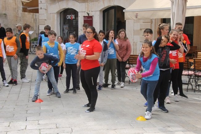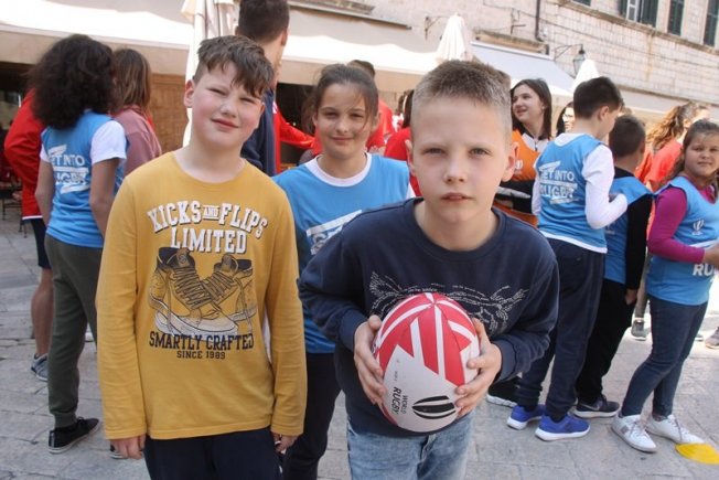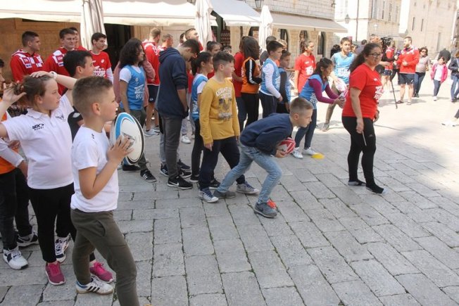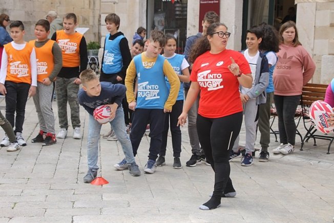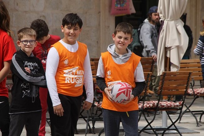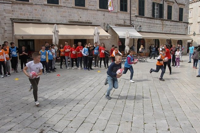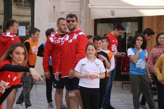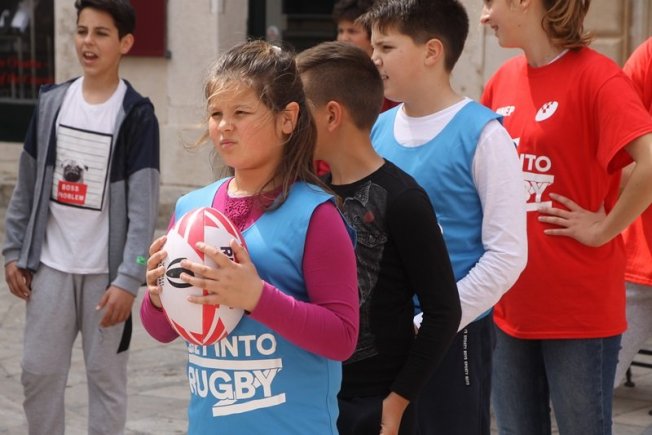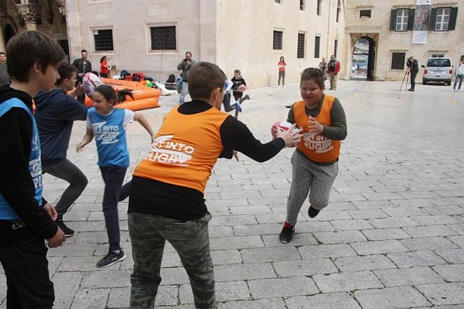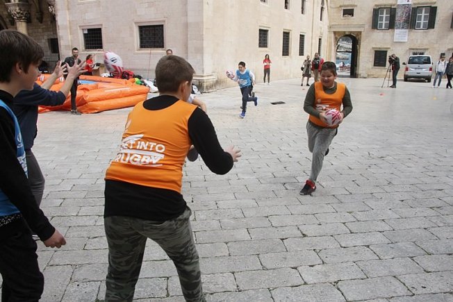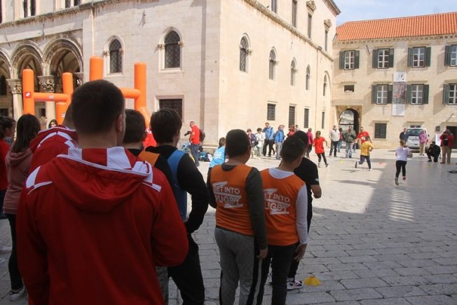 U sklopu promocije ragbi utakmice Hrvatska – Oxford koja će se održati na Gradskom stadionu Lapad u subotu, u Gradu je, između Kneževog dvora i Katedrale održan prvi dječji ragbi dan.