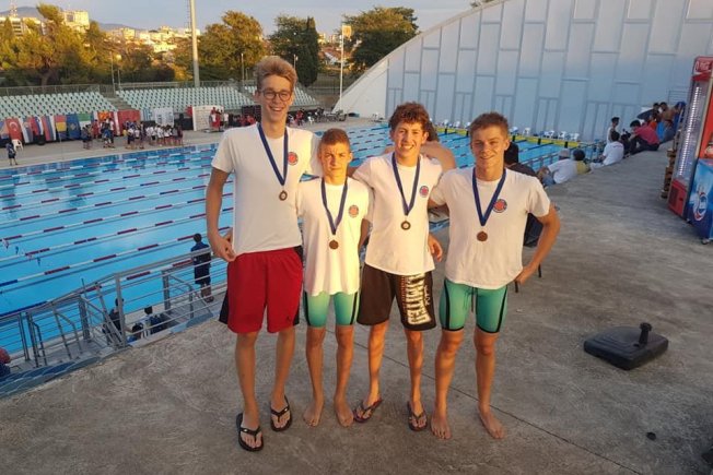 Jugova muška štafeta 4x100 slobodno u sastavu: Luka Đurović, Michel Brassard, Đivo Damić iMario Šurković zauzela je drugo mjesto u apsolutnoj kategoriji.