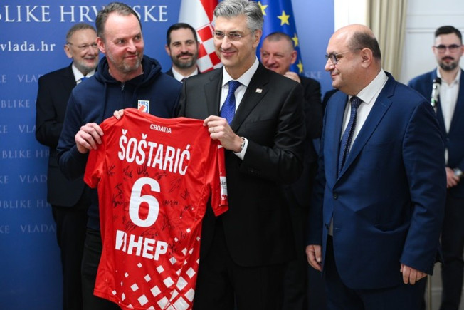 U Banskim dvorima članovi Vlade i premijer Plenković primili su hrvatske rukometaše Hrvatski rukometni savez i čestitali im na brončanoj medalji na EHF EURO.