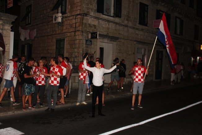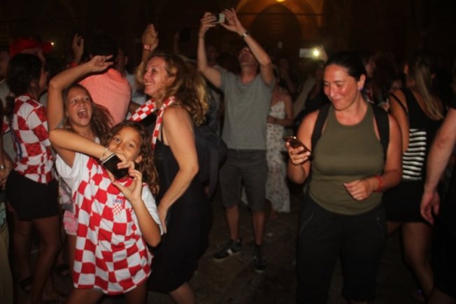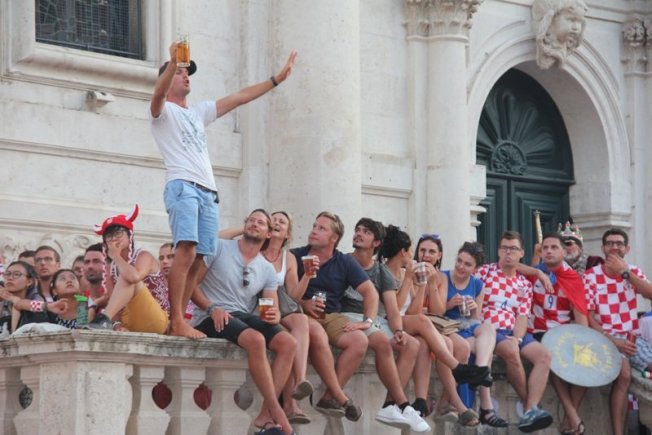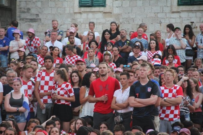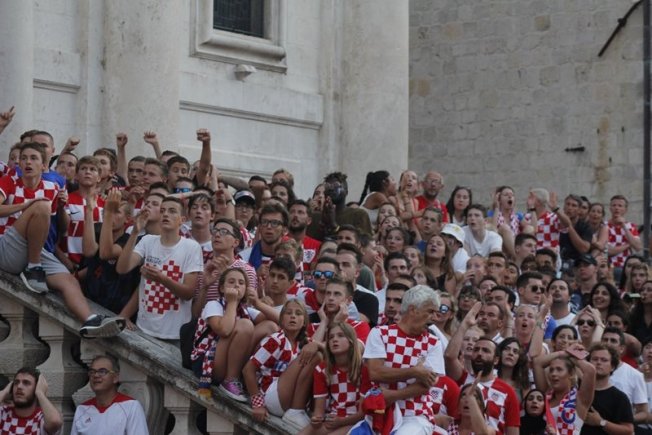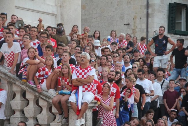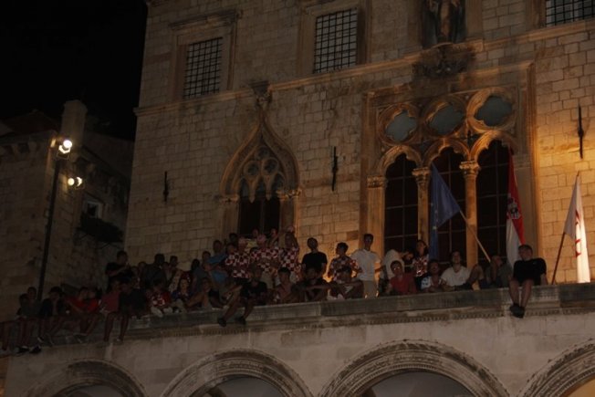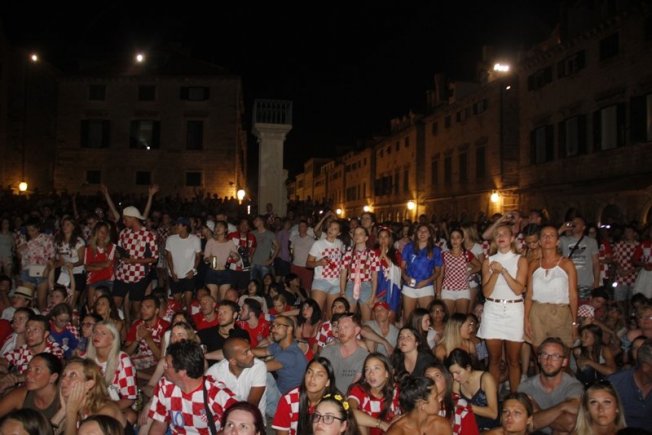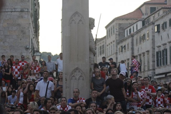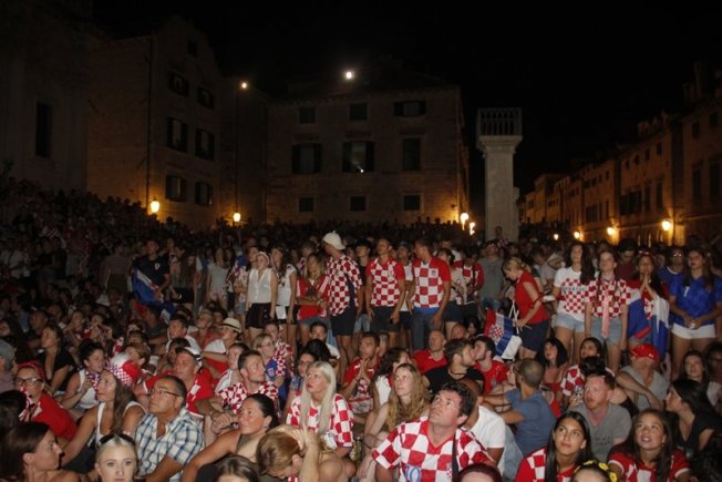 Povijesni uspjeh nogometaša proslavio se na Stradunu gdje su navijači, domaći, ali i veliki broj turista, gledali utakmicu te se veselili svakom pogotku Hrvatske. Na samom početku Englezi su dali gol što je veliki broj gostiju iz te zemlje proslavio, ali pogotkom Perišića Hrvatska je ušla u produžetke dok je deset minuta prije kraja Mandžukić je zabio za 2:1.
