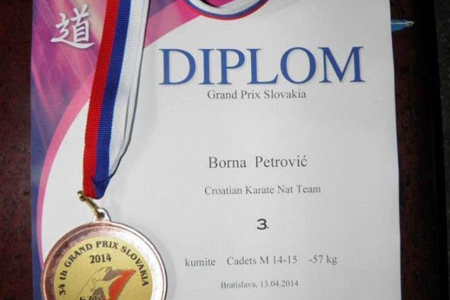 Mladi Pločanin Borna Petrović, član karate kluba Porto Tolero, u Bratislavi je na 34. Grand Prixu Slovakia za hrvatsku reprezentaciju osvojio bronačanu medalju.