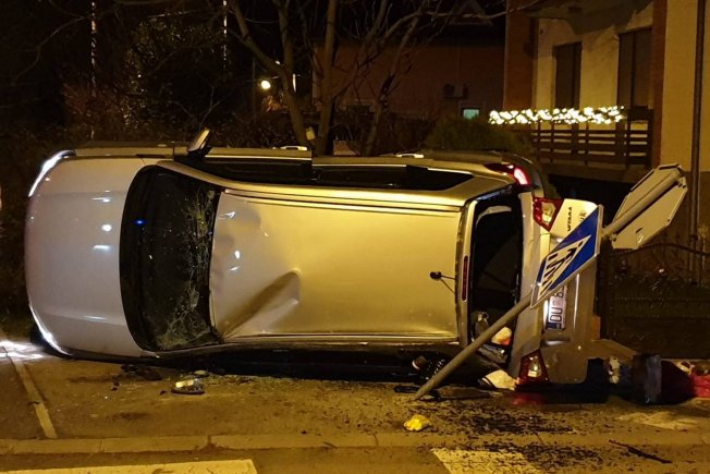 Od siline udarca Suzuki je odbačen na prometni znak i prevrnuo se.