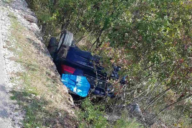 Automobil je sletio s puta na cesti između Bosanke i Brgata te završilo na krovu.