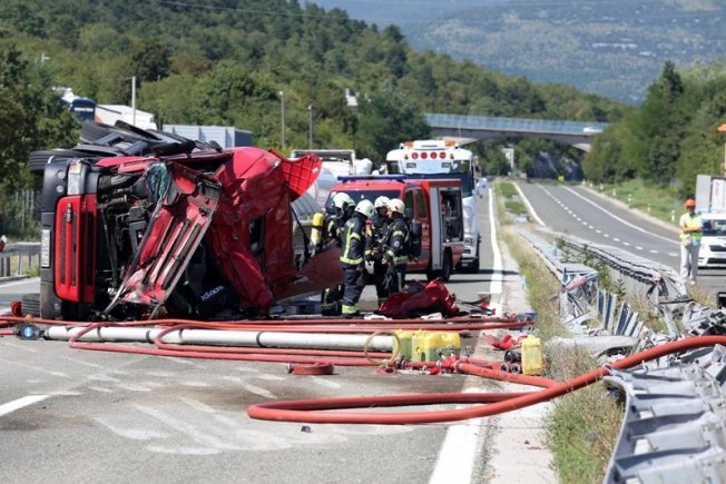 Prilikom prometne nesreće je iz cisterne istekla manja količina naftnih derivata (gorivo), stoji u priopćenju Policijske uprave primorsko-goranske.