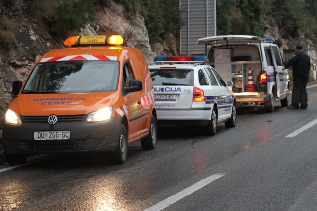 Policija radi očevid, a promet na cesti, kojeg regulira policija, se obavlja izmjenično.