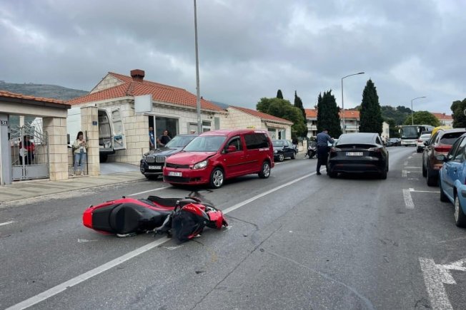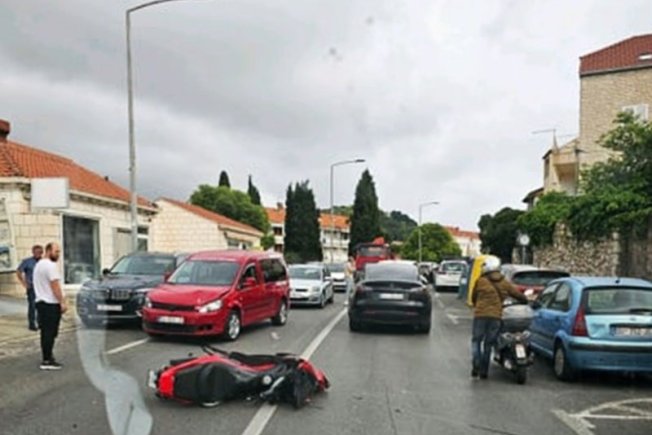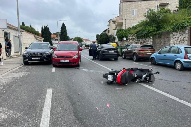 Nesreća se dogodila u Ulici Iva Vojnovića gdje su se sudarili dva automobila i motocikl. Vozač motocikla je zadobio lakše tjelesne ozljede te je prebačen u OB Dubrovnik.