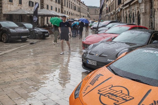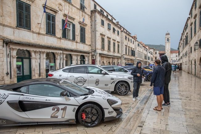 Automobili poput Lamborghinija, McLarena, Ferrarija, Mercedesa, BMW-a, Porschea i ostalih privukli su pozornost prolaznika na Stradunu. Iako je danas padala kiša, vozila su izgledala atraktivno. Ovaj automobilski đir je krenuo iz Mostara, preko Dubrovnika pa do Splita. Nakon toga sudionici idu na Pag i do Opatije, a sve završava u Cazinu.