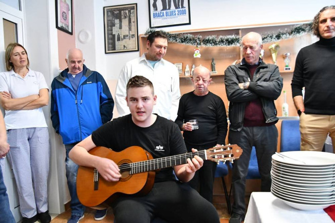 Pjesmom je sve razgalio Julian Lopin, učenik, korisnik doma, prateći se na gitari, a potom su svi mogli uživati u ukusnom bakalaru na bijelo i na crveno, skuhanima u kuhinji doma, poslastica su bile domske prikle.