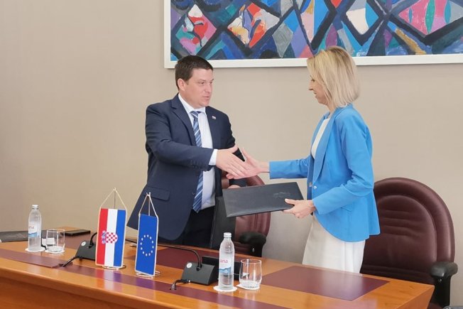 Ministar mora, prometa i infrastrukture Oleg Butković i potpredsjednica Europske investicijske banke (EIB) Teresa Czerwinska potpisali su jutros Memorandum o razumijevanju između Ministarstva i EIB-a, kojim će se učvrstiti suradnja između ove dvije institucije s ciljem osiguranja zajedničkih ciljeva, prvenstveno u pogledu korištenja dostupnih europskih sredstava i daljnjoj pomoći vezano uz prometne projekte.