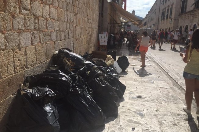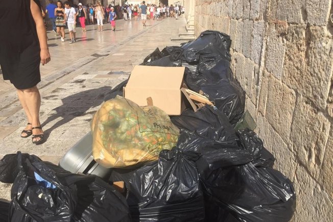 Hrpa smeća danas se mogla vidjeti na Stradunu, i to u jutarnjim satima, kad je u povijesnoj jezgri već bio pozamašan broj prolaznika među kojima su bili i turisti pa prizor zasigurno nije najbolja promocija Grada.