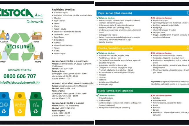 U nastavku možete vidjeti upute za odvajanje otpada: