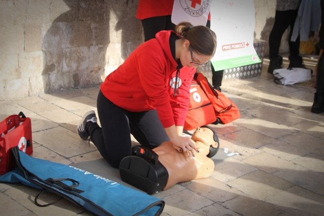 CRVENI KRIŽ NA STRADUNU Pokazali vježbe reanimacije, od najmanjeg uzrasta može se raditi na edukaciji (FOTO)